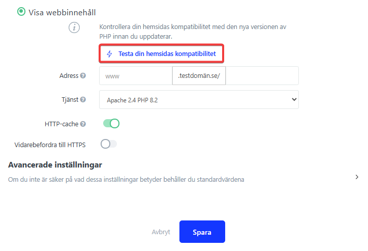 Du kan testa om din hemsida är kompatibel med högre PHP-versioner utan att behöva slå om det live på nätet.
