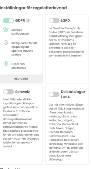 Tips: Aktivera GDPR om du eller dina användare finns inom EU.