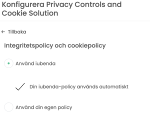 Om du inte redan har en policy kan du skapa och koppla den i detta steg, antingen via iubenda eller genom att ladda upp din egen.