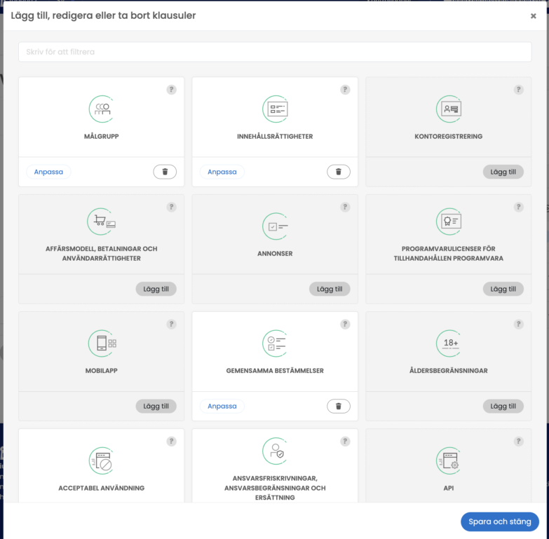 Som nämnts ovan behöver dina användarvillkor anpassas efter individuella behov. Du gör detta genom att redigera och lägga till klausuler.