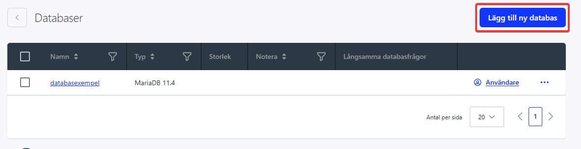 - Klicka på Lägg till ny databas uppe i det högra hörnet.