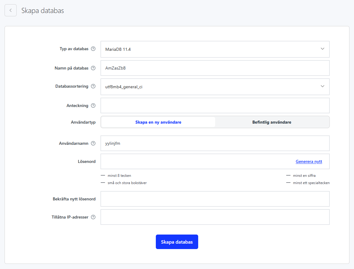 Du skapar dina databaser och tillhörande användare genom din kontrollpanel. I denna guide kommer vi gå igenom hur du går tillväga.