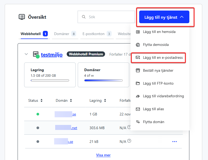 - På startsidan, i rutan ”Översikt”, finns en knapp där det står ”Lägg till ny tjänst”.